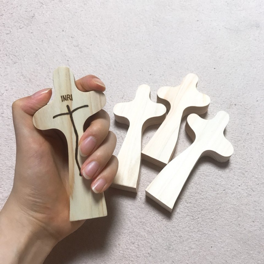 편백나무 기도손 십자가