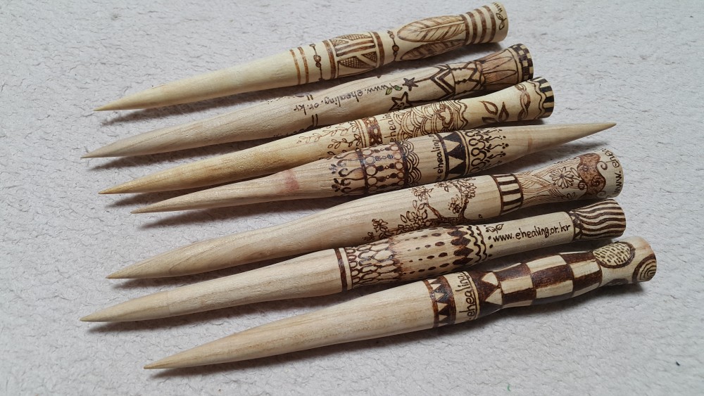 우드버닝 나무 도트펜 힐링캠프 0 2206 2018.06.03 13:19 우드버닝 도안을 목판에 옮기는 작업 시 사용하면 좋습니다~~ 연필, 볼펜과 같은 뽀족한 것은 모두 사용 가능하지만, 도안을 여러번 쓰다보면 연필과 볼펜같은 경우 도안이 망가집니다. 나무 도트펜으로 사용시엔 힘을 빼고 가볍게 도안을 따라 그리면 목판에 그려지며, 도안도 계속 사용할 수 있어요~ 단, 도트펜이 지나간 자리가 표시나지 않아 밑그림이 제대로 그려졌는지 확인 후 도안을 분리하시기 바랍니다~